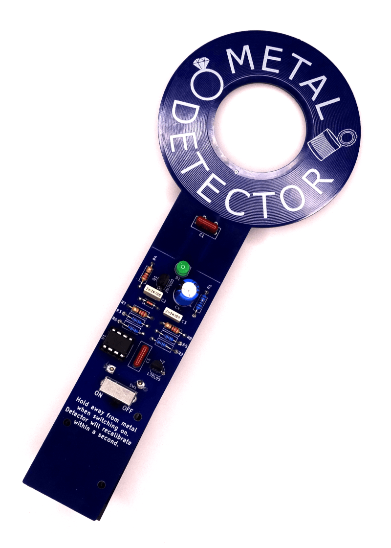 This pocket metal detector is entertaining and helps you practice soldering.